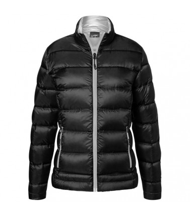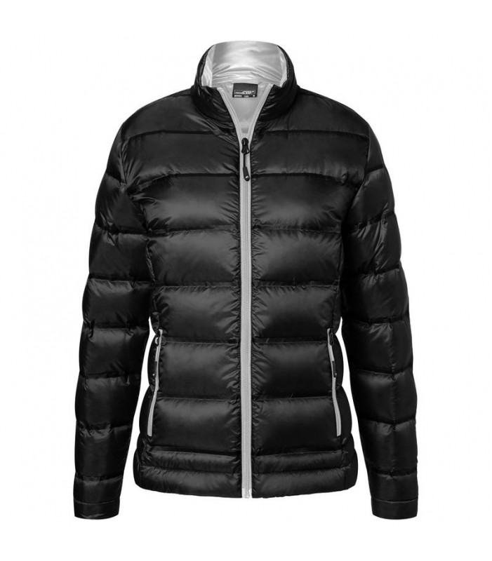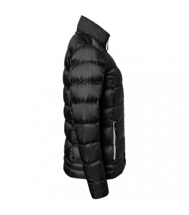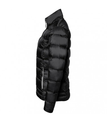 100% poliestere. piumino morbido termosaldato imbottito in piuma, antivento e idrorepellente, cerniera e parte interna in contrasto, 2 tasche laterali con zip, 2 tasche interne, regolabile in vita, leggermente sfiancato.