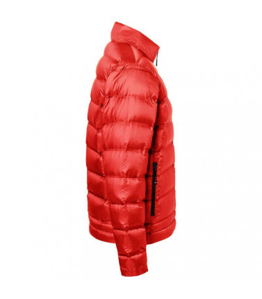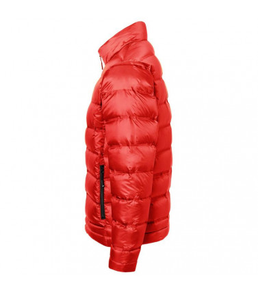 100% poliestere. piumino morbido termosaldato imbottito in piuma, antivento e idrorepellente, cerniera e parte interna in contrasto, 2 tasche laterali con zip, 2 tasche interne, regolabile in vita.