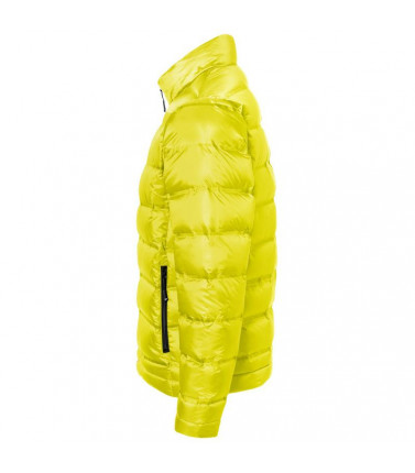 100% poliestere. piumino morbido termosaldato imbottito in piuma, antivento e idrorepellente, cerniera e parte interna in contrasto, 2 tasche laterali con zip, 2 tasche interne, regolabile in vita.