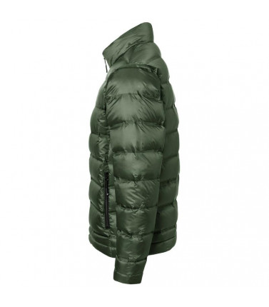 100% poliestere. piumino morbido termosaldato imbottito in piuma, antivento e idrorepellente, cerniera e parte interna in contrasto, 2 tasche laterali con zip, 2 tasche interne, regolabile in vita.