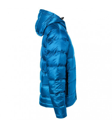 100% poliestere. piumino morbido termosaldato imbottito in piuma, cappuccio regolabile, tessuto antivento e idrorepellente, cerniera e parte interna in contrasto, 2 tasche laterali con zip, 2 tasche interne, regolabile in vita.