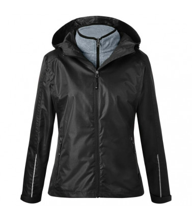 100% poliestere. giacca 3 in 1, tessuto resistente al vento e all'acqua (colonna d'acqua di 5.000 mm), traspirante e permeabile al vapore (5.000 g/mâ²/24 h), cuciture nastrate, antimacchia grazie al bionic-finishâ®eco. cappuccio regolabile, cerniera frontale nascosta con protezione per il mento, 2 tasche laterali con zip, 1 tasca interna. dettagli riflettenti sulla manica e sul retro. parte interna in pile con bordino in contrasto. leggermente sfiancata.