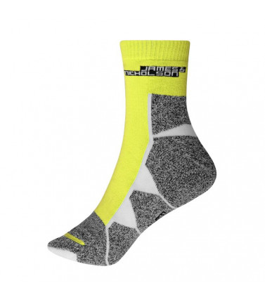 55% poliestere, 22% cotone, 21% poliammide, 2% elastane. calzini in tessuto traspirante e regolatore di umiditã , cuciture piatte, tessuto rinforzato nell'area della punta e del tallone.