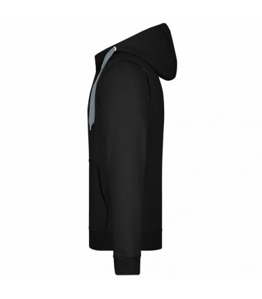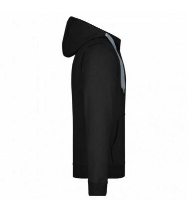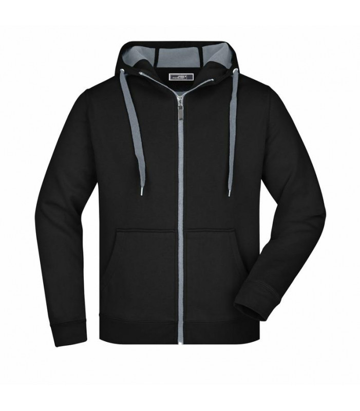 55% poliestere, 45% cotone. felpa giacca sportiva con cappuccio. zip intera, cordino e interno a colore a contrasto. polsini e girovita con elastane, tasche a marsupio.