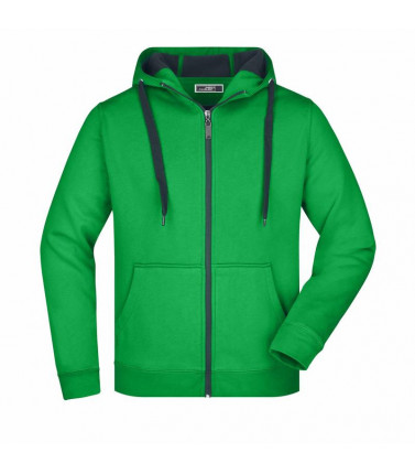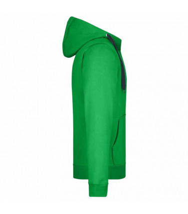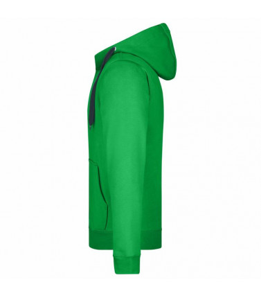 55% poliestere, 45% cotone. felpa giacca sportiva con cappuccio. zip intera, cordino e interno a colore a contrasto. polsini e girovita con elastane, tasche a marsupio.