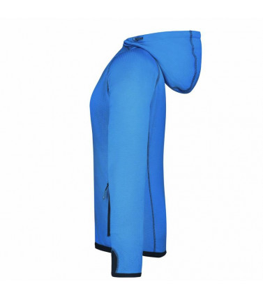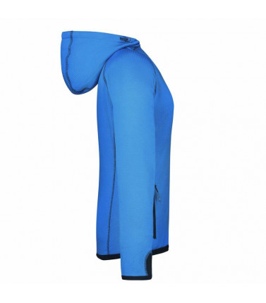 giacca in pile con cappuccio piacevole morbidezza e di facile manutenzione, all'esterno liscio con discreta stampa allover, all'interno pile ruvido con motivo a rombi, lunga zip frontale ricoperta con protezione per il mento, cappuccio con cordino elastic