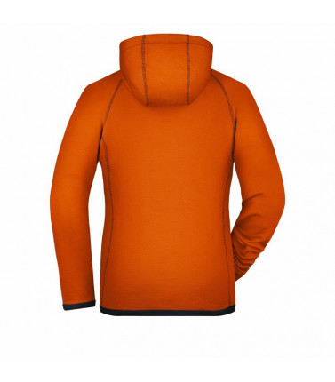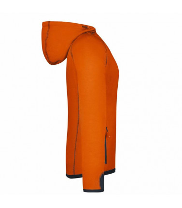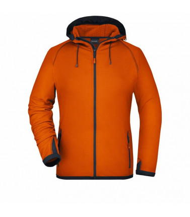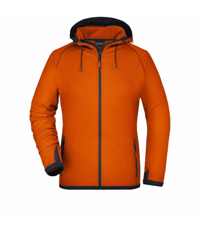 giacca in pile con cappuccio piacevole morbidezza e di facile manutenzione, all'esterno liscio con discreta stampa allover, all'interno pile ruvido con motivo a rombi, lunga zip frontale ricoperta con protezione per il mento, cappuccio con cordino elastic