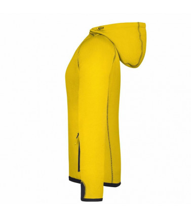 giacca in pile con cappuccio piacevole morbidezza e di facile manutenzione, all'esterno liscio con discreta stampa allover, all'interno pile ruvido con motivo a rombi, lunga zip frontale ricoperta con protezione per il mento, cappuccio con cordino elastic