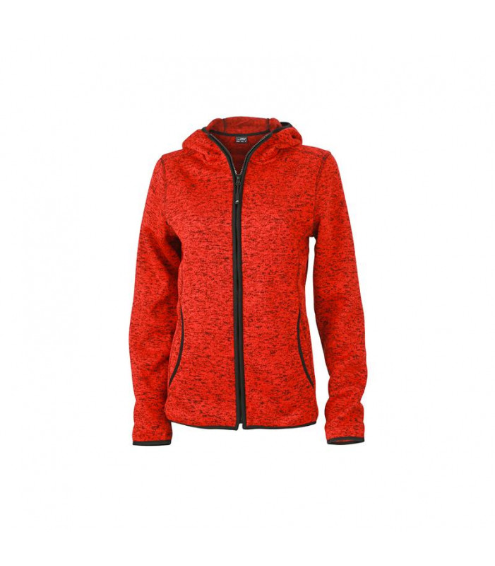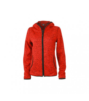 giacca con cappuccio in maglia in pile melange tessuto morbido, caldo e facile da stirare. all'esterno appare come lavorato a maglia, all'interno soffice e morbido, sottili cuciture divisorie, cappuccio, polsini a contrasto. 2 tasche sul davanti, leggerme