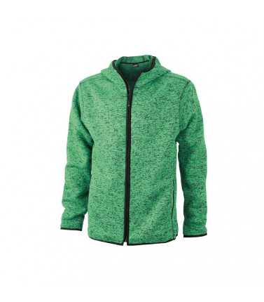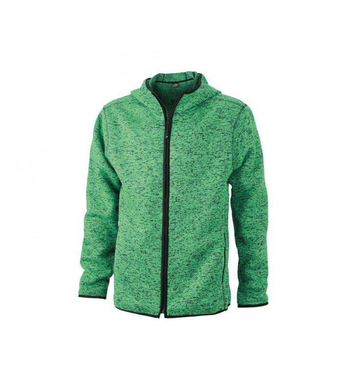 giacca con cappuccio in maglia in pile melange tessuto morbido, caldo e facile da stirare. all'esterno appare come lavorato a maglia, all'interno soffice e morbido, sottili cuciture divisorie, cappuccio, polsini a contrasto, 2 tasche sul davanti. tessuto