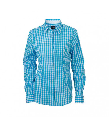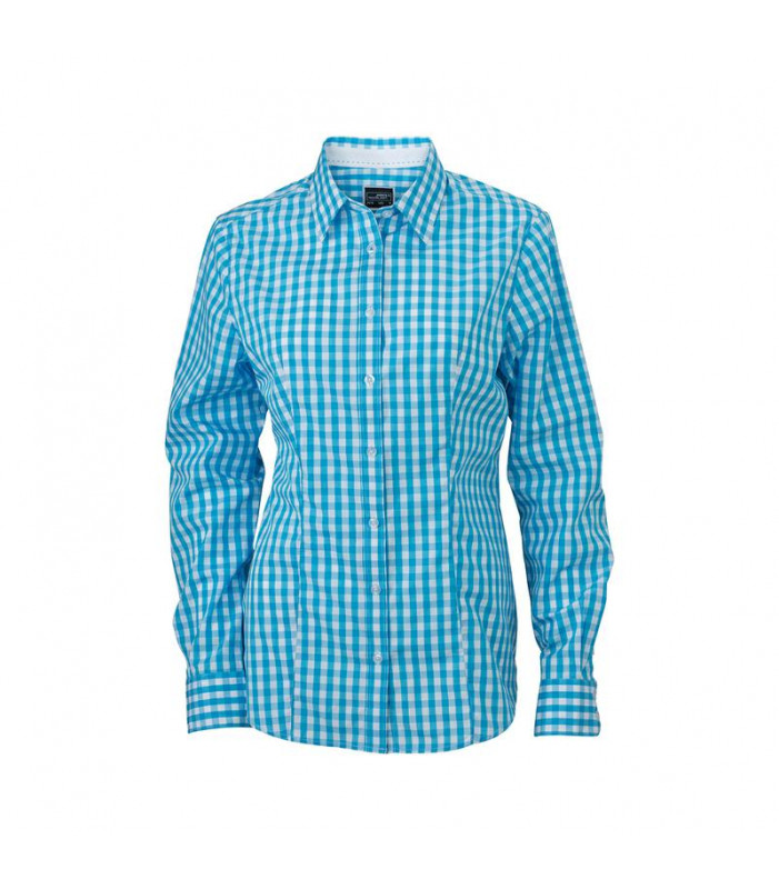 100% cotone, camicia fashion a quadri con inserti in tinta unita sul colletto e polsini. tessuto in popeline di alta qualità, stiro facile, orlo arrotondato, taglio femminile avvitato. gr 100