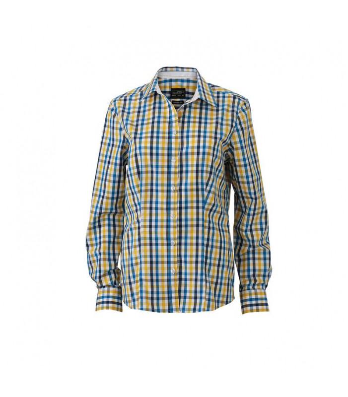 100% cotone, camicia fashion a quadri con inserti in tinta unita sul colletto e polsini. tessuto in popeline di alta qualità, stiro facile, orlo arrotondato, taglio femminile avvitato. gr 100