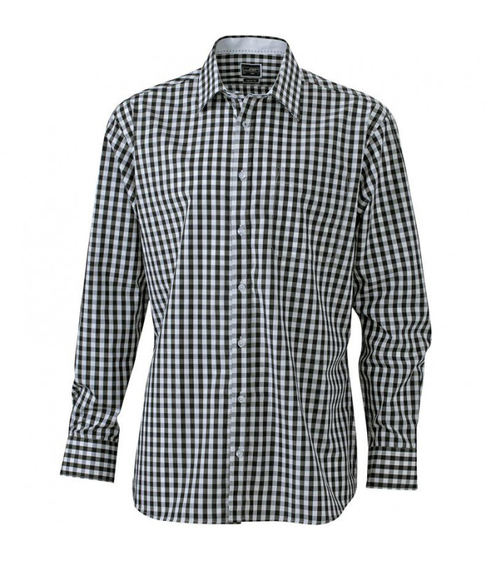 100% cotone, camicia fashion a quadri con inserti in tinta unita sul colletto e polsini. tessuto in popeline di alta qualità, stiro facile, orlo arrotondato, taglio classico leggermente avvitato tasca sul petto. gr 100