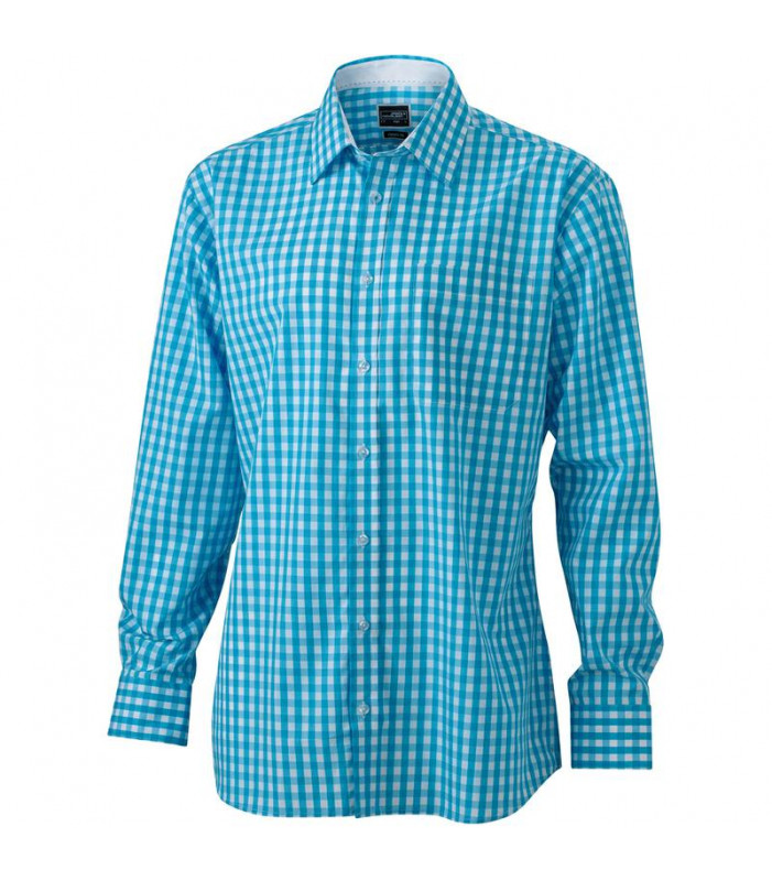 100% cotone, camicia fashion a quadri con inserti in tinta unita sul colletto e polsini. tessuto in popeline di alta qualità, stiro facile, orlo arrotondato, taglio classico leggermente avvitato tasca sul petto. gr 100