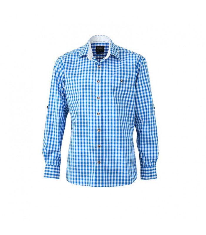 camicetta donna e camicia uomo da classico costume tradizionale pregiata qualitã di popeline, facile da stirare con finitura easy-care, manica rimboccabile con linguetta e bottone. orlo arrotondato, bottoni da costume tradizionale a imitazione del corno. forma classica, leggermente sciancrata, tasca pettorale, 2 pieghe sulla schiena tessuto esterno 100% cotone, manica lunga, policromo, pence sulla schiena