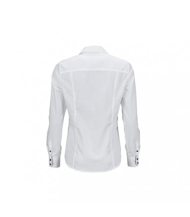 camicia 100% cotone, con inserti trendy sul colletto e polsini. cotone popeline di alta qualità facile da stirare. bottoni in colore a contrasto, orlo arrotondato. taglio femminile sciancrato. 100 g/m²
