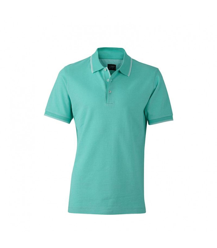 polo manica corta 100% cotone pique' di alta qualita', colletto e maniche a contrasto bicolore, 3 bottoni.