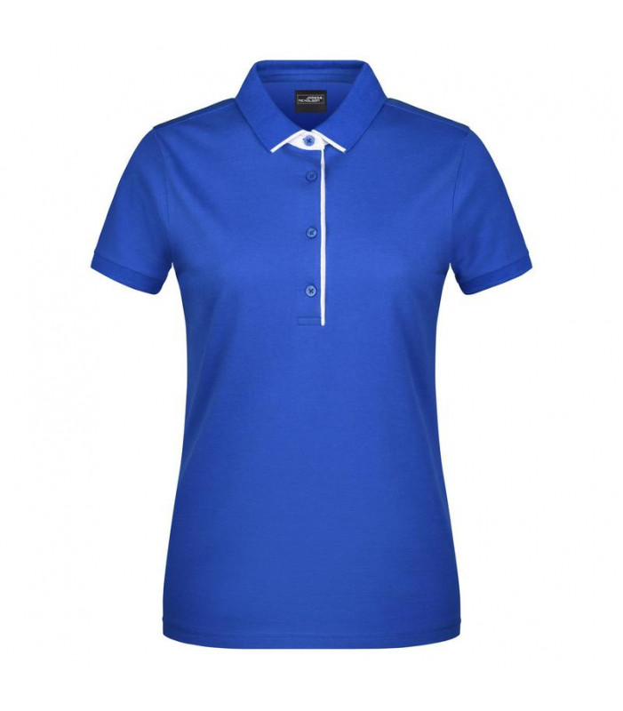 100% cotone pettinato ring--spun. polo da donna in tessuto piquã©, fettuccia nel collo e nelle maniche a costine, righe a contrasto sul collo, colletto e abbottonatura interna con colori a contrasto, polsini tono su tono, spacchetti laterali, leggermente sfiancata, 4 bottoni.