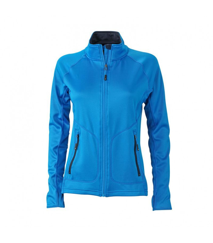 giacca sagomata elastica per un look sportivo materiale morbidissimo, semplice da lavare, caldo e traspirante, esterno liscio, interno ruvido, zip intera e nascosta, con protezione per il mento, collo in piedi, cuciture piatte, 2 tasche con chiusura a zip, supporti pollice, taglio sciancrato tessuto esterno (200 g/mâ²): 92% poliestere, 8% elastan, donna, manica lunga, colletto alla coreana, strechfleece