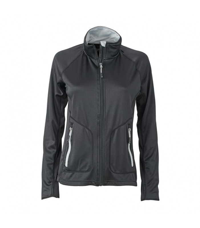 giacca sagomata elastica per un look sportivo materiale morbidissimo, semplice da lavare, caldo e traspirante, esterno liscio, interno ruvido, zip intera e nascosta, con protezione per il mento, collo in piedi, cuciture piatte, 2 tasche con chiusura a zip, supporti pollice, taglio sciancrato tessuto esterno (200 g/mâ²): 92% poliestere, 8% elastan, donna, manica lunga, colletto alla coreana, strechfleece