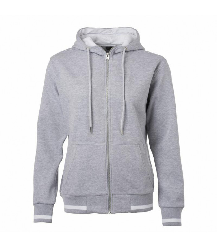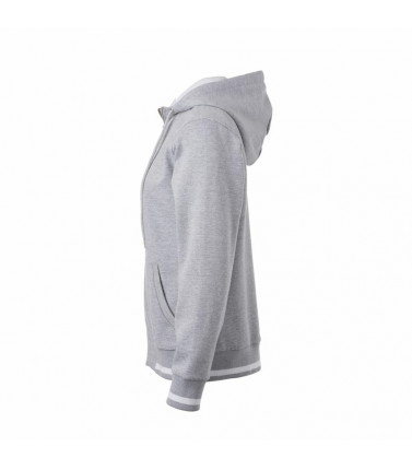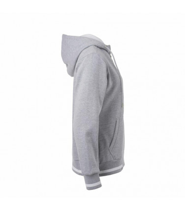 giacca con cappuccio e cerniera. tessuto esterno (300 g/mâ²): 80% cotone, 20% poliestere. tessuto morbido e di alta qualitã , internamente sgarzato, polsini a maglia di elastan, strisce contrastanti nei polsini e in vita, cappuccio a due strati contrastanti, cerniera metallica ykk, tasca a canguro, leggermente avvitata, taglio casual.