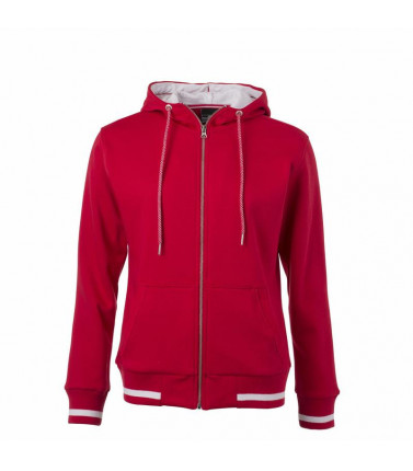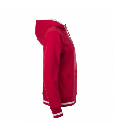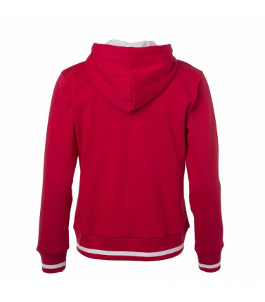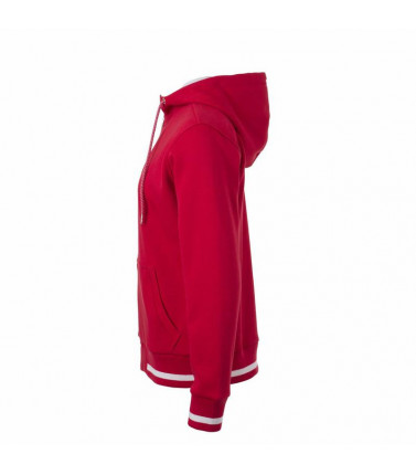 giacca con cappuccio e cerniera. tessuto esterno (300 g/mâ²): 80% cotone, 20% poliestere. tessuto morbido e di alta qualitã , internamente sgarzato, polsini a maglia di elastan, strisce contrastanti nei polsini e in vita, cappuccio a due strati contrastanti, cerniera metallica ykk, tasca a canguro, leggermente avvitata, taglio casual.