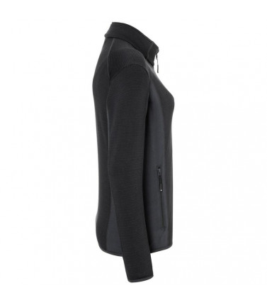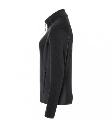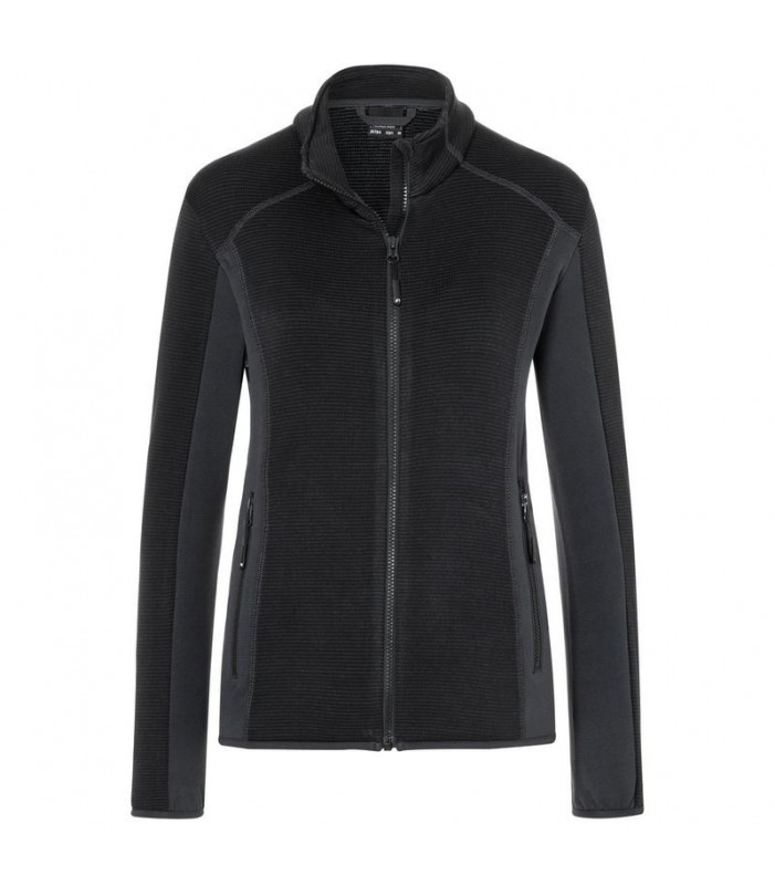 92% poliestere, 8% elastan. giacca morbida in pile, tessuto bielastico e di facile manutenzione, motivo a righe, sgarzata internamente. cerniera nascosta con protezione per il mento, collo alto, inserti in contrasto e cuciture piatte, 2 tasche laterali con zip, leggermente sfiancata.