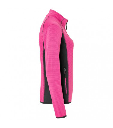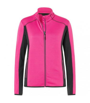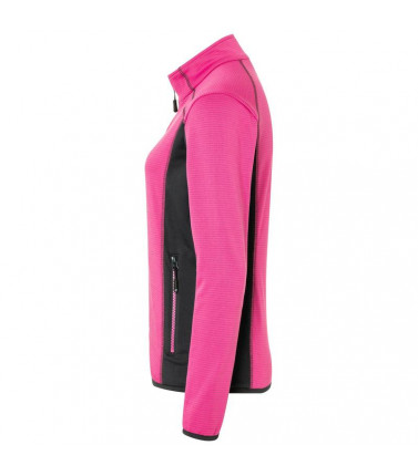 92% poliestere, 8% elastan. giacca morbida in pile, tessuto bielastico e di facile manutenzione, motivo a righe, sgarzata internamente. cerniera nascosta con protezione per il mento, collo alto, inserti in contrasto e cuciture piatte, 2 tasche laterali con zip, leggermente sfiancata.