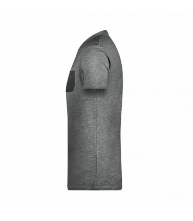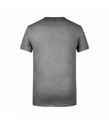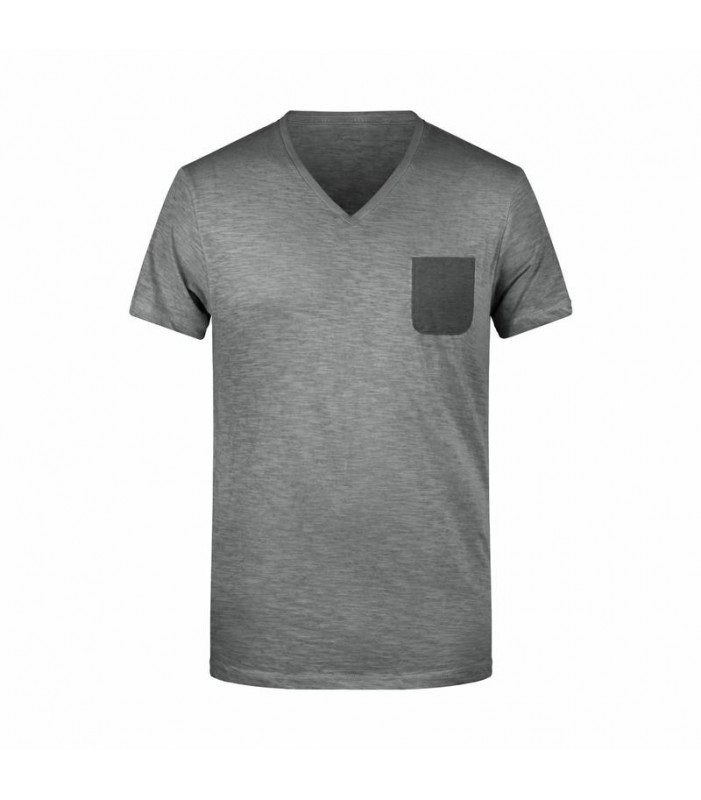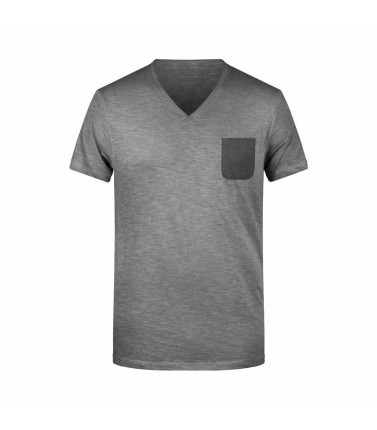 100% cotone organico single jersey. t-shirt manica corta set-in, scollo a v, tessuto slub, stile vintage. polsini in elastane, taschino sul petto in colore contrastante.