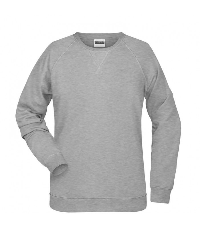 85% cotone organico ring-spun, 15% poliestere. felpa da donna in tessuto di alta qualitã , girocollo classico, colletto e fascette con elastan, colletto patch, etichetta strappabile, leggermente avvitata.