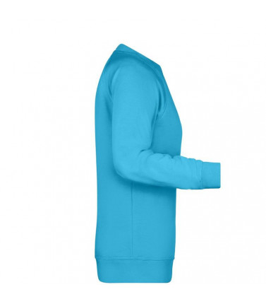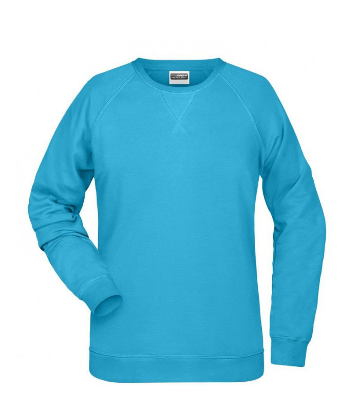 85% cotone organico ring-spun, 15% poliestere. felpa da donna in tessuto di alta qualitã , girocollo classico, colletto e fascette con elastan, colletto patch, etichetta strappabile, leggermente avvitata.