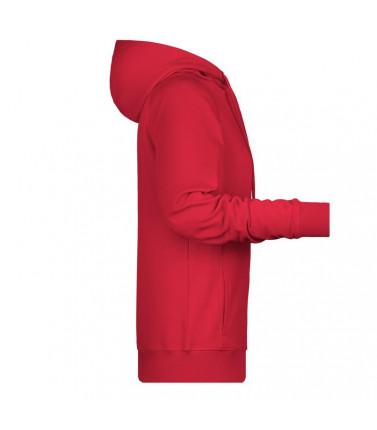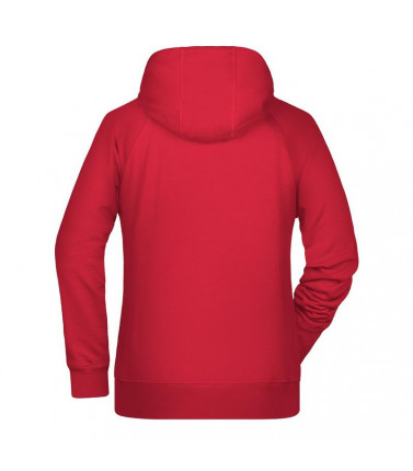 85% cotone organico, 15% poliestere. felpa da donna in tessuto di alta qualitã , cappuccio a due strati con coulisse, cuciture laterali divisorie sul davanti, tasca a canguro, cinturini con elastan, etichetta a strappo, leggermente sfiancata.