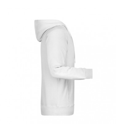 85% cotone organico pettinato ring-spun, 15% poliestere. felpa da uomo in tessuto di alta qualitã , cappuccio a due strati con coulisse, cuciture laterali sul davanti, tasca a canguro, cinturini con elastan, etichetta a strappo.