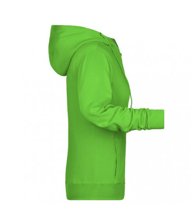 85% cotone organico pettinato ring-spun, 15% poliestere. felpa da donna in tessuto di alta qualitã , cappuccio a due strati con coulisse, cuciture laterali sul davanti, tasca a canguro, chiusura a zip intera in metallo, etichetta strappabile, leggermente sfiancata.