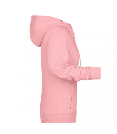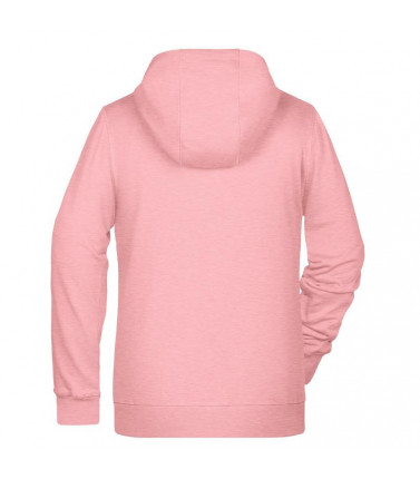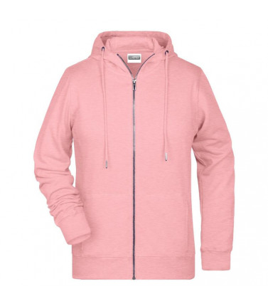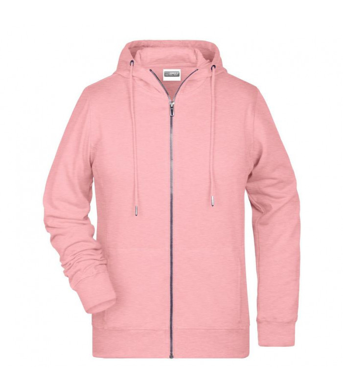 85% cotone organico pettinato ring-spun, 15% poliestere. felpa da donna in tessuto di alta qualitã , cappuccio a due strati con coulisse, cuciture laterali sul davanti, tasca a canguro, chiusura a zip intera in metallo, etichetta strappabile, leggermente sfiancata.