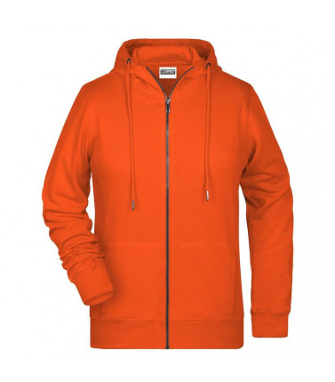85% cotone organico pettinato ring-spun, 15% poliestere. felpa da donna in tessuto di alta qualitã , cappuccio a due strati con coulisse, cuciture laterali sul davanti, tasca a canguro, chiusura a zip intera in metallo, etichetta strappabile, leggermente sfiancata.