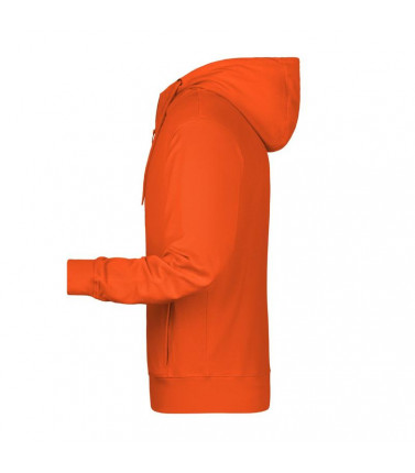 85% cotone organico pettinato ring-spun, 15% poliestere. felpa da uomo in tessuto di alta qualitã , cappuccio a due strati con coulisse, cuciture laterali sul davanti, tasca a canguro, chiusura a zip intera in metallo, etichetta strappabile.