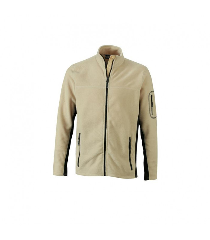 giacca in pile resistente in materiale misto pratico micropile anti-pilling, inserti elastici in softshell in contrasto di colore su braccia e fianchi, cerniera foderata con protezione per il mento, colletto alla coreana, 2 tasche laterali e sulle maniche