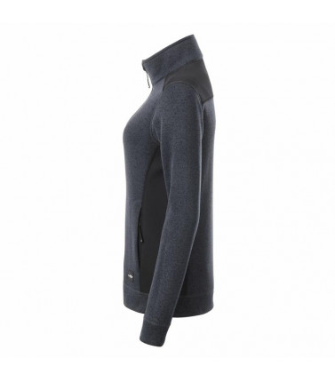 100% poliestere. pile con maniche set-in, tessuto easy care, esternamente in maglia, inserti in softshell nei lati, sulle spalle e sulle maniche, 2 tasche laterali con cerniera nascosta e appoggio per il mento, colletto alto, leggermente sfiancata, struttura con pannelli laterali.