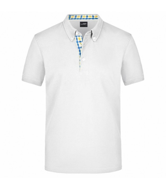 100% cotone pettinato piquet. polo con rifinitura quadrettata sullorlo del collo, allinterno dellabbotonatura e sugli spacchetti laterali. colletto botton-down, 3 bottoni in colore a contrasto.
