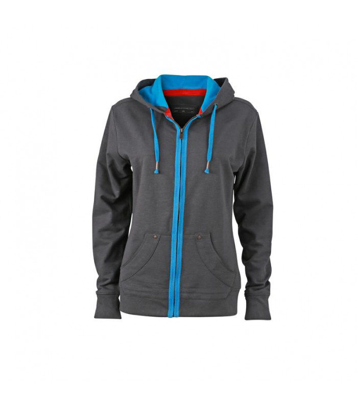 felpa con cappuccio in modernissima qualitã con filato a fiamme filato a fiamme di alta qualitã french terry, cintura e polsini con elastan. cappuccio interno a 2 strati, nastro del collo in colore contrastante, cordoncino e rivestimento della cerniera in colore contrastante, cerniera in metallo, tasca a marsupio con bottoncini in stile moderno, leggermente avvitata, stile disinvolto tessuto esterno (290 g/mâ²): 100% cotone, donna, policromo
