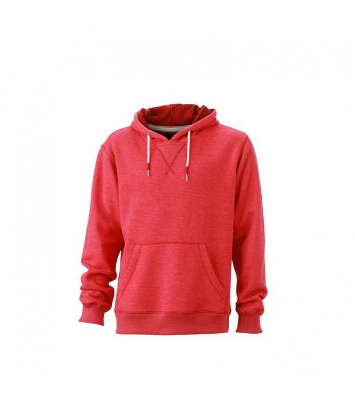 60% cotone, 40% poliestere. felpa con cappuccio in tessuto mélange estremamente soffice. taglio comodo, cappuccio a doppio strato, cordoncio e nastro parasudore in colore a contrasto. tasca a marsupio.