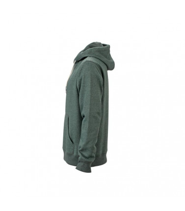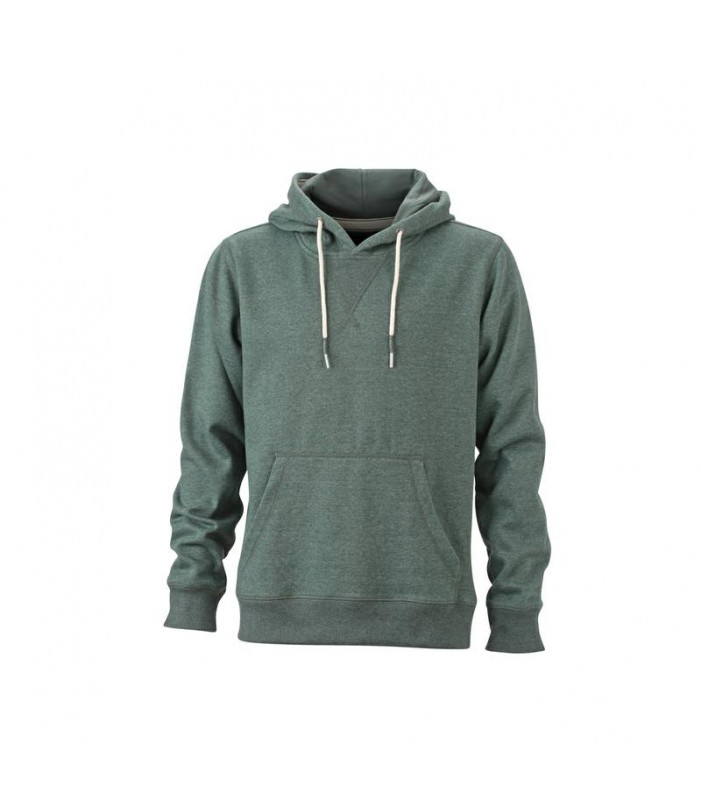 60% cotone, 40% poliestere. felpa con cappuccio in tessuto mélange estremamente soffice. taglio comodo, cappuccio a doppio strato, cordoncio e nastro parasudore in colore a contrasto. tasca a marsupio.