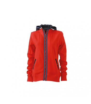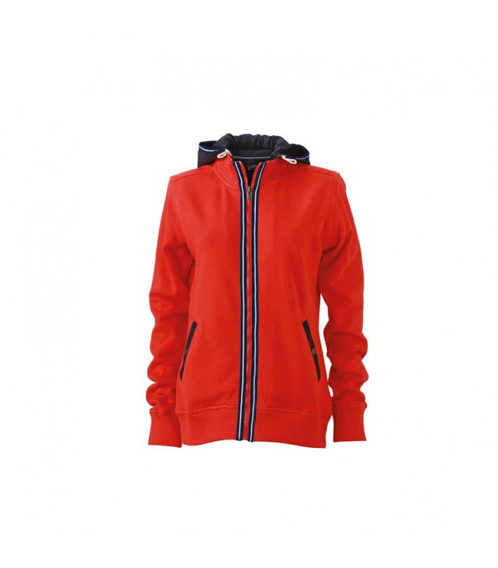 100% cotone. giacca in felpa con cappuccio removibile (con cerniera). bordini e colletto alla coreana in elastane, due tasche laterali con bottone automatico, fascetta in colore contrastante sulla chiusura lampo e sul cappuccio.