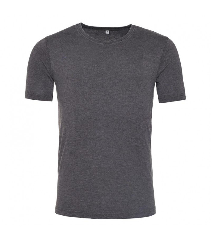 55% cotone ring-spun, 45% poliestere. t-shirt manica corta set-in, girocollo a costine, effetto vintage, taglio moderno, morbida al tatto, doppie cuciture sulle maniche e sul bordo inferiore, superficie adatta a stampa e ricami.