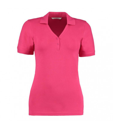 collo a v, 98% cotone, 2% lycra, manica corta, colletto e giromanica in costina scollo a v con 2 bottoni tono su tono, spacchetti laterali.