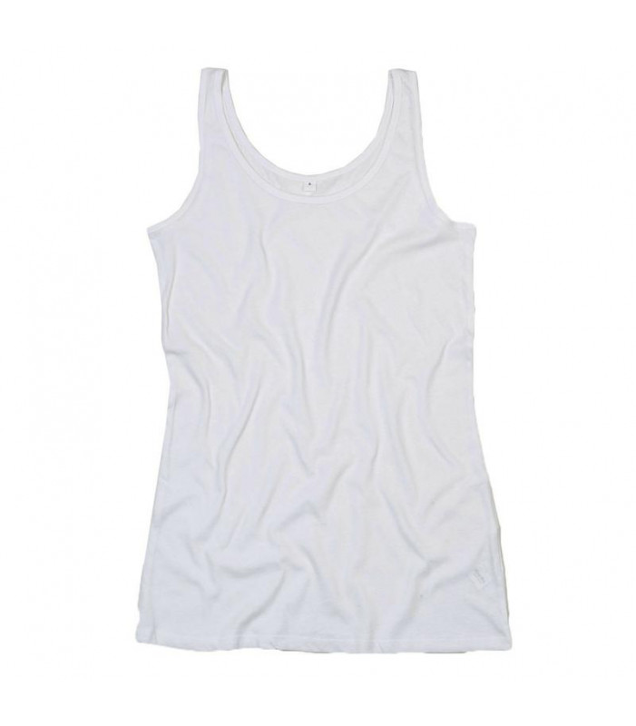 canotta 100% cotone combed ring-spun per un tocco davvero soffice, ampia scollatura davanti e dietro, taglio femminile extra lungo. capo perfetto per etichette personalizzate, etichetta taglie e composizione separate dal marchio.