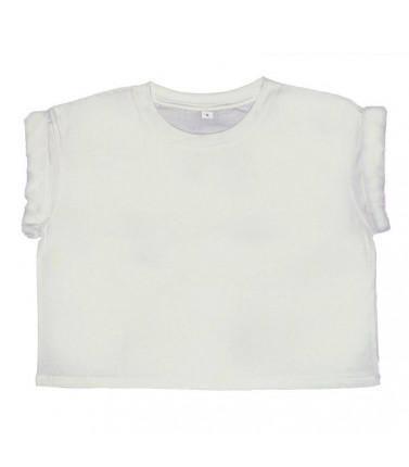 100% cotone organico single jersey, ring-spun. top manica corta, set-in, colletto in costina 1x1, nastro di rinforzo alle spalle. taglio femminile, piã¹ corto, giromaniche con orlo arrotolato. etichetta strappabile. certificato gots, struttura con cuciture laterali.