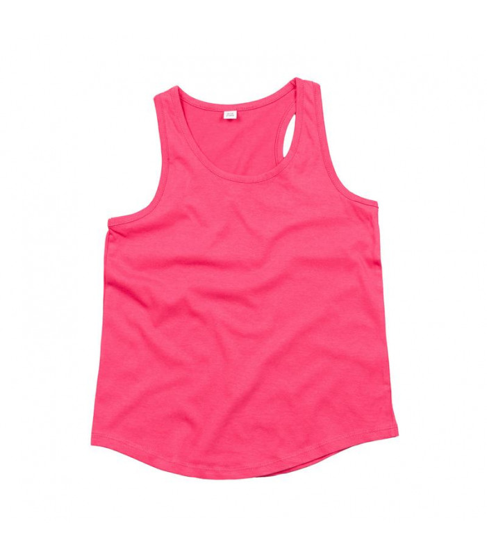 100% cotone single jersey. canotta bambina, scollo in stile vogatore sulla schiena e vestibilità moderna, orlo stondato. capo perfetto per etichette personalizzate. etichetta taglia e composizione separate dal marchio.