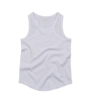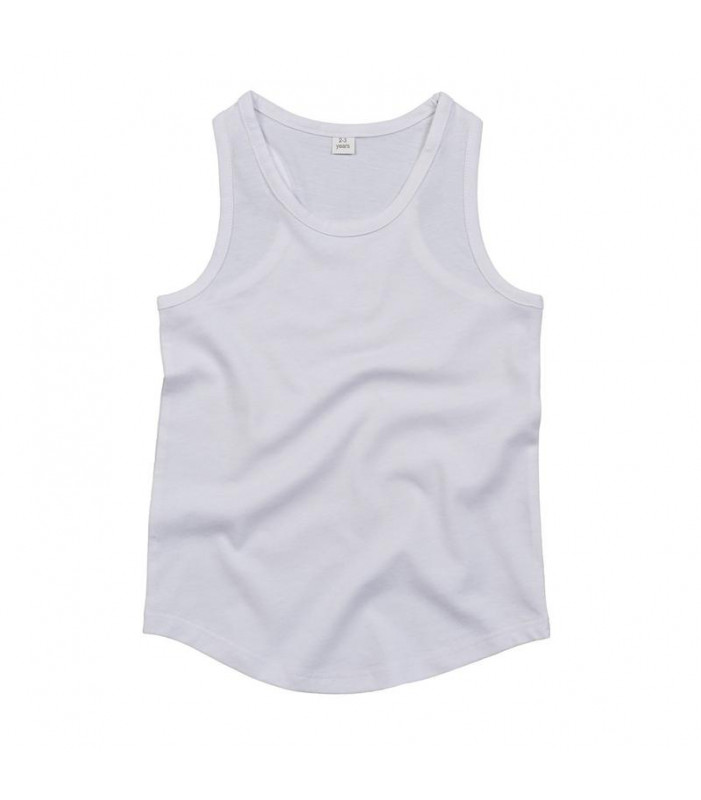 100% cotone single jersey. canotta bambina, scollo in stile vogatore sulla schiena e vestibilità moderna, orlo stondato. capo perfetto per etichette personalizzate. etichetta taglia e composizione separate dal marchio.